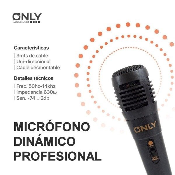 Micrófono ONLY MOD1118 con Cable de 3 Metros Plug 6.5 MM Línea Económica