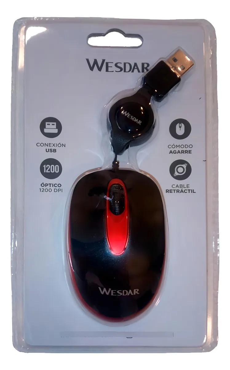 Este pequeño mouse de Wesdar es perfecto para transportar. Gracias a su cable retráctil es ideal para utilizar en tu notebook o tablet y llevarlo cómodamente a dónde quieras.