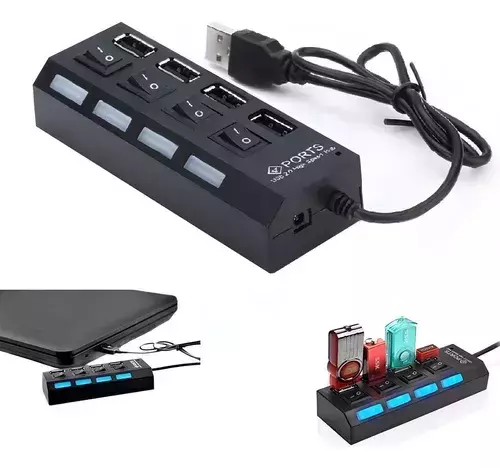 ✔️ Función: Permite conectar hasta 4 dispositivos USB simultáneamente en un solo puerto.