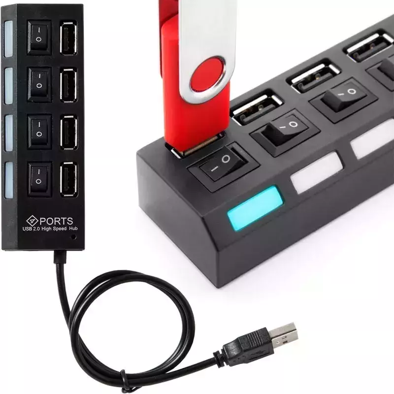 Este hub USB 2.0 es la solución ideal para ampliar la conectividad de tu computadora, permitiéndote conectar múltiples dispositivos de forma práctica, ordenada y segura, con control total sobre cada puerto.