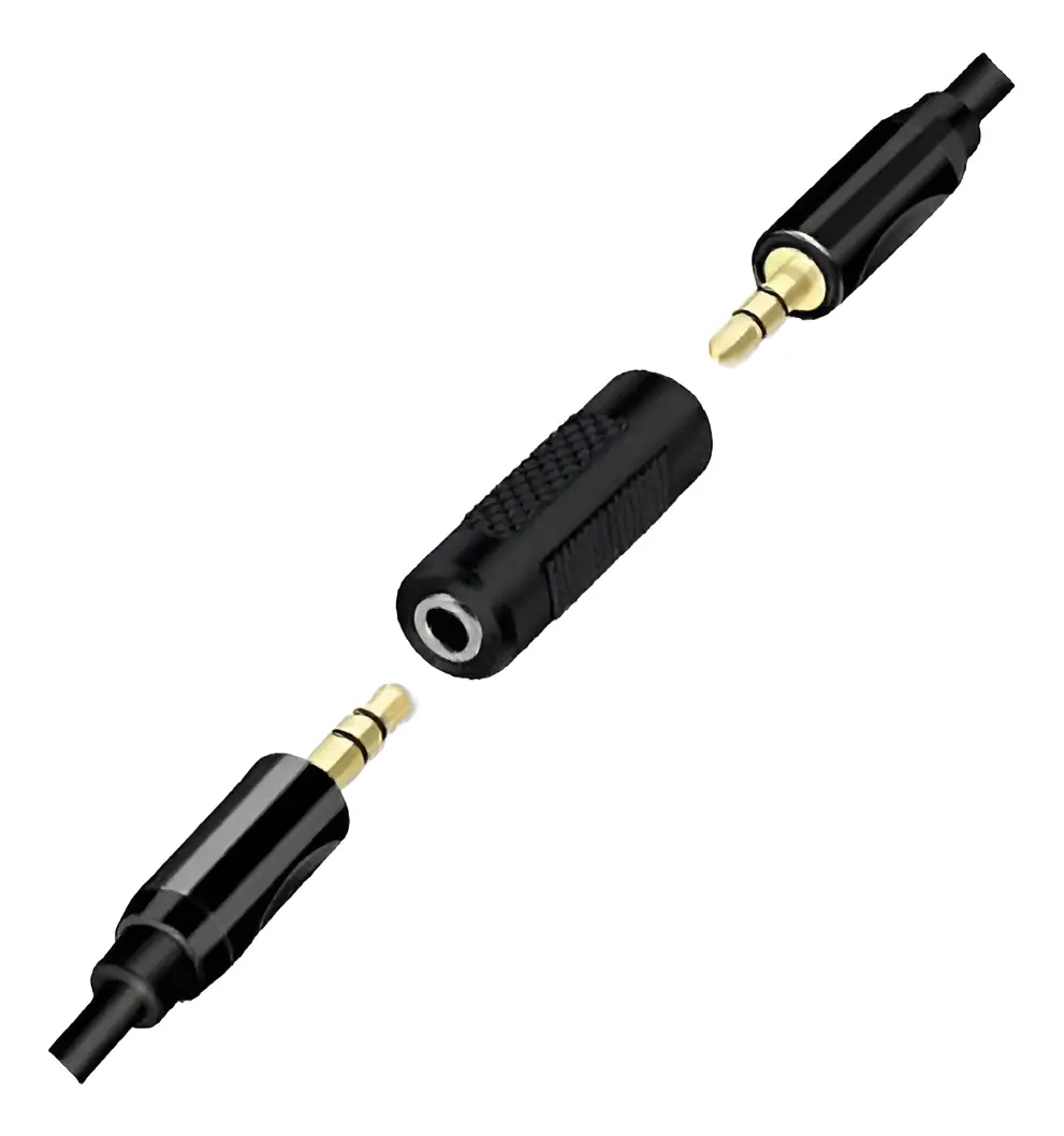 - Generalmente se utiliza para unirse a 2 x 3,5 mm jack cables juntos (tamaño de auriculares), para extender o acoplar.