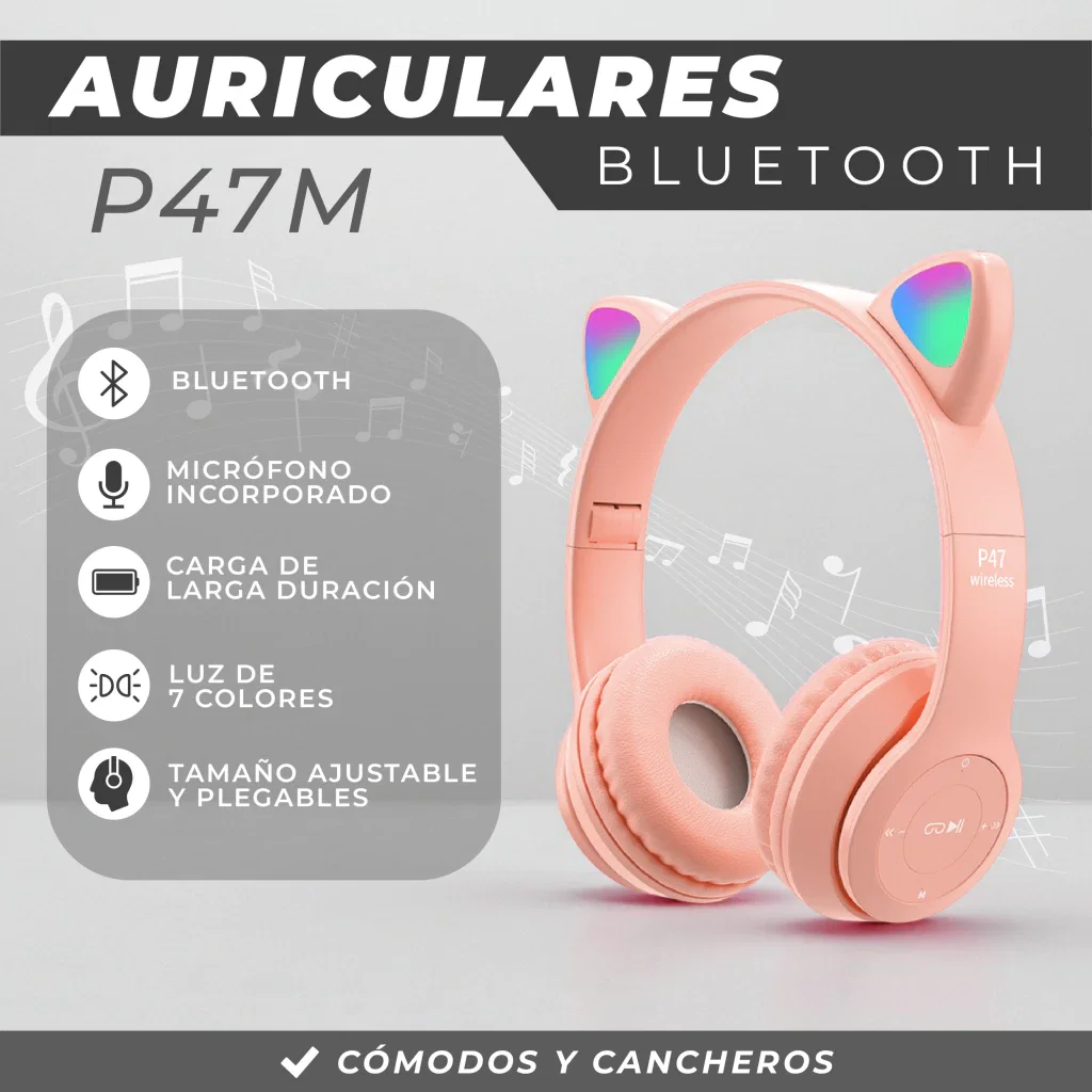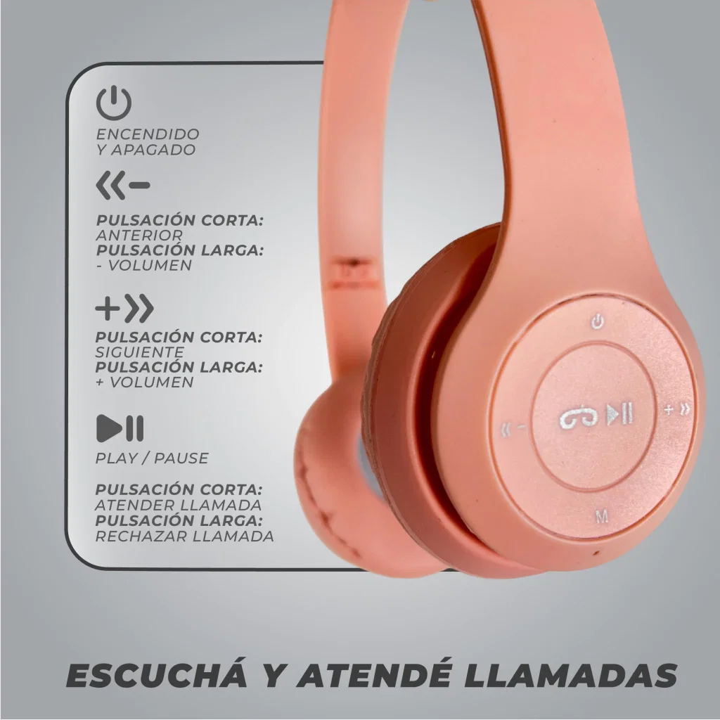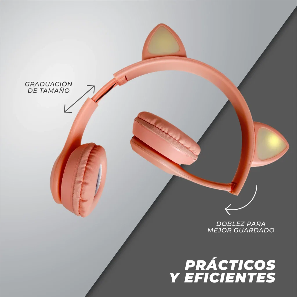 Auricular Bluetooth TIME AU-16016 Diseño Orejitas Luces LED Plegable Bateria Recargable