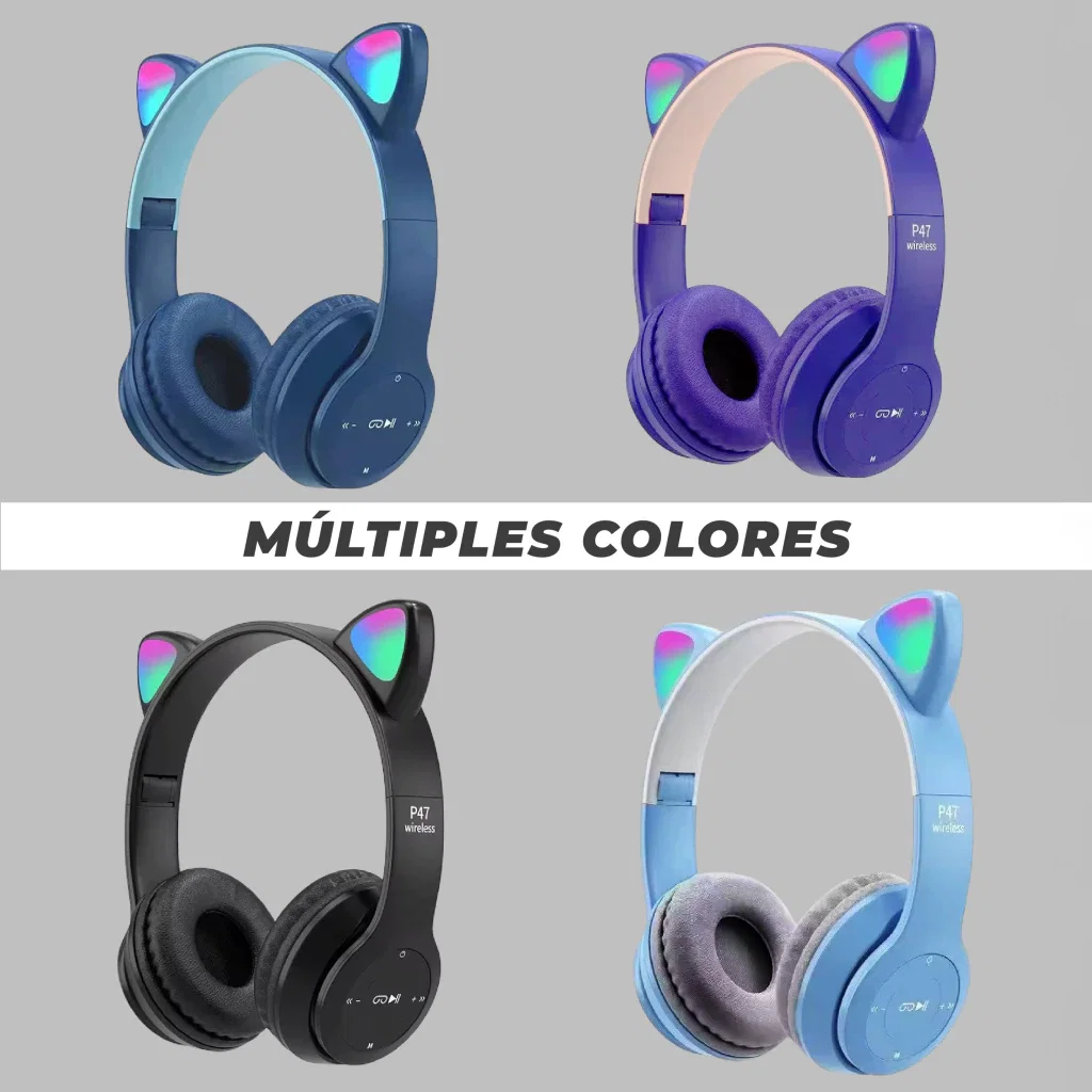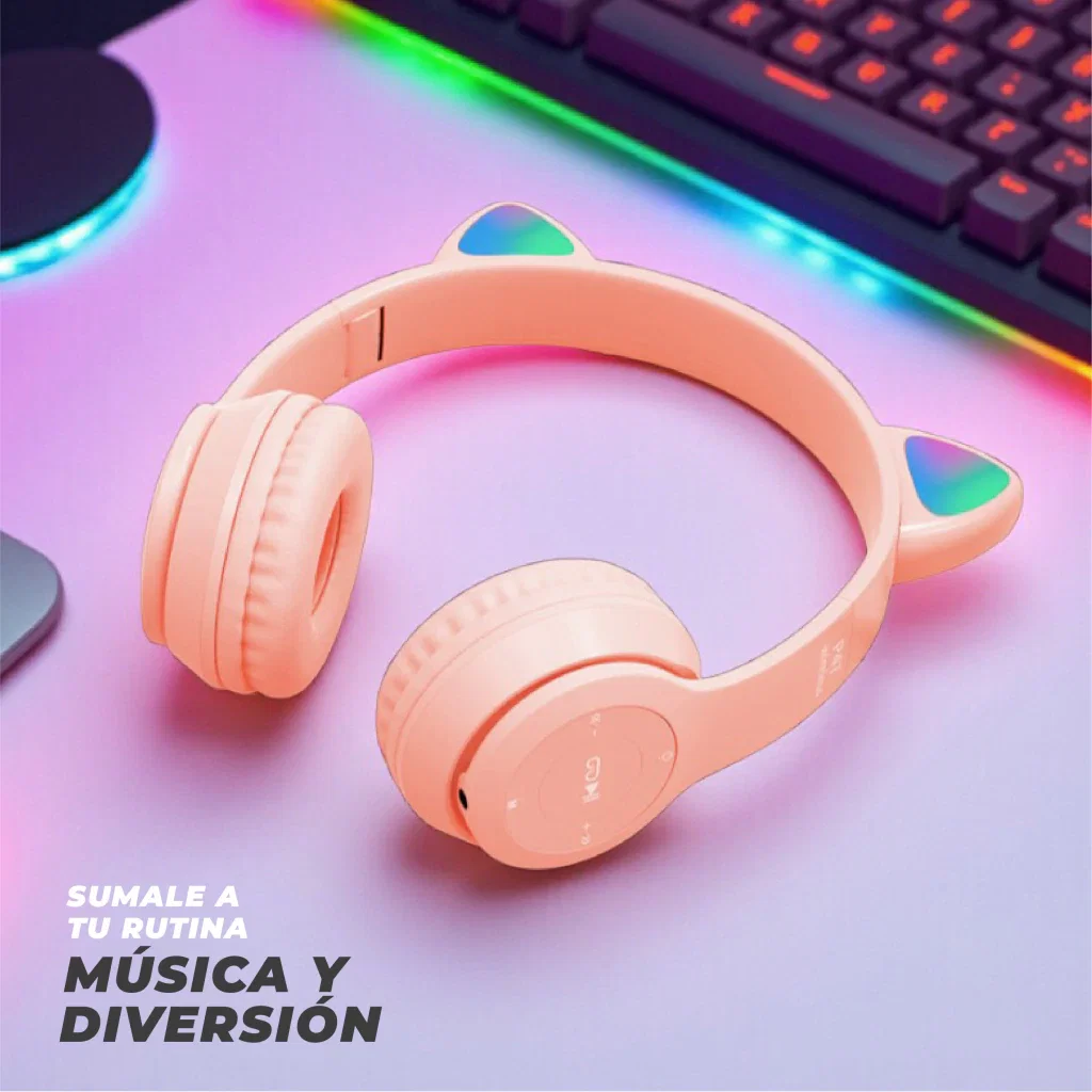 Diseño de luz LED: los auriculares BT adoptan un diseño de luz LED independiente de oreja de gato, luz colorida y calidad de sonido en movimiento, una excelente opción para regalos de niños.