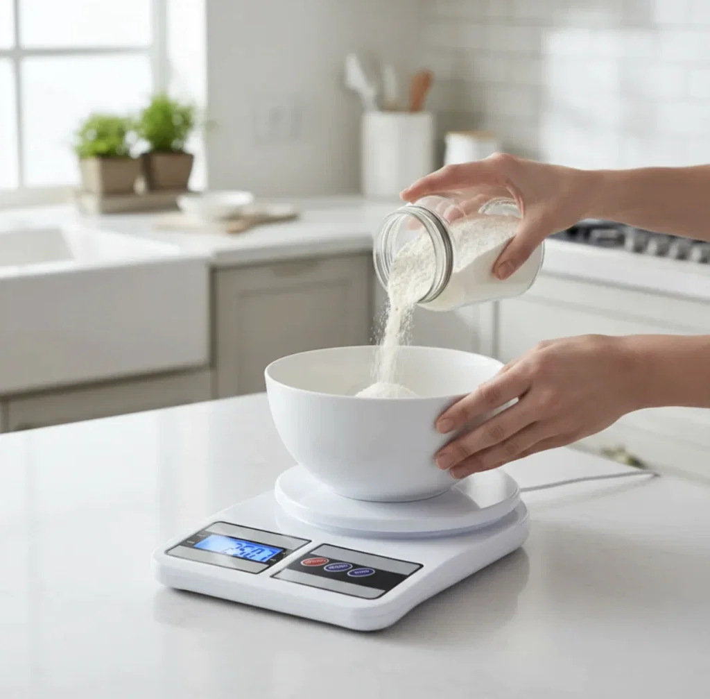 🥣 FUNCIÓN TARA (BOTÓN 0): ¡Olvídate de las matemáticas! Pesá tus ingredientes dentro de bowls o frascos descontando el peso del recipiente automáticamente.