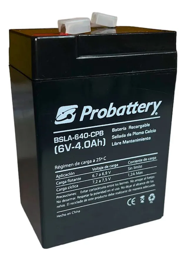 Bateria PROBATTERY de Gel 6V 4A Luces de Emergencia Alarmas UPS (BSLA-640-CPB)