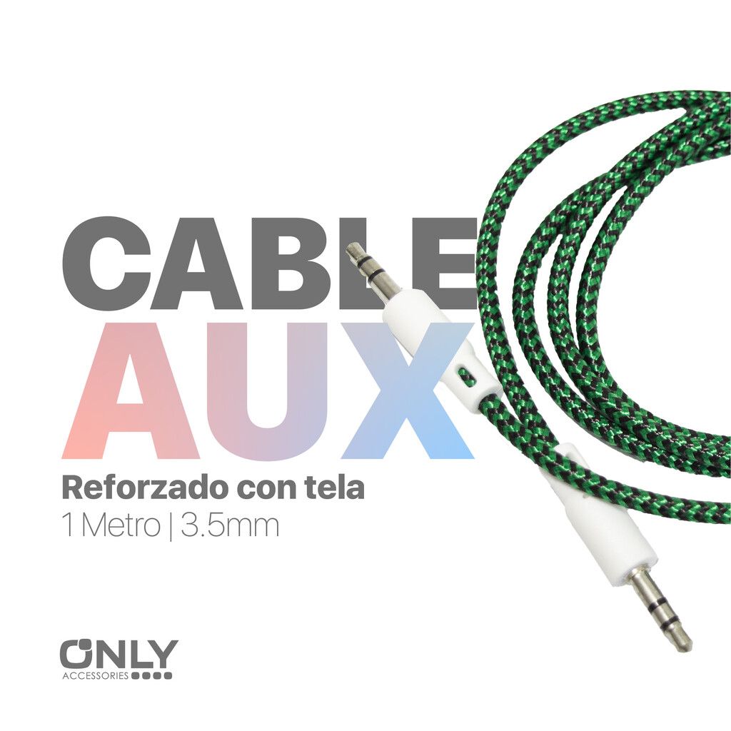 Cable Auxiliar Plug 3.5 MM Macho Macho ONLY Reforzado Mallado TELA 1 Metro