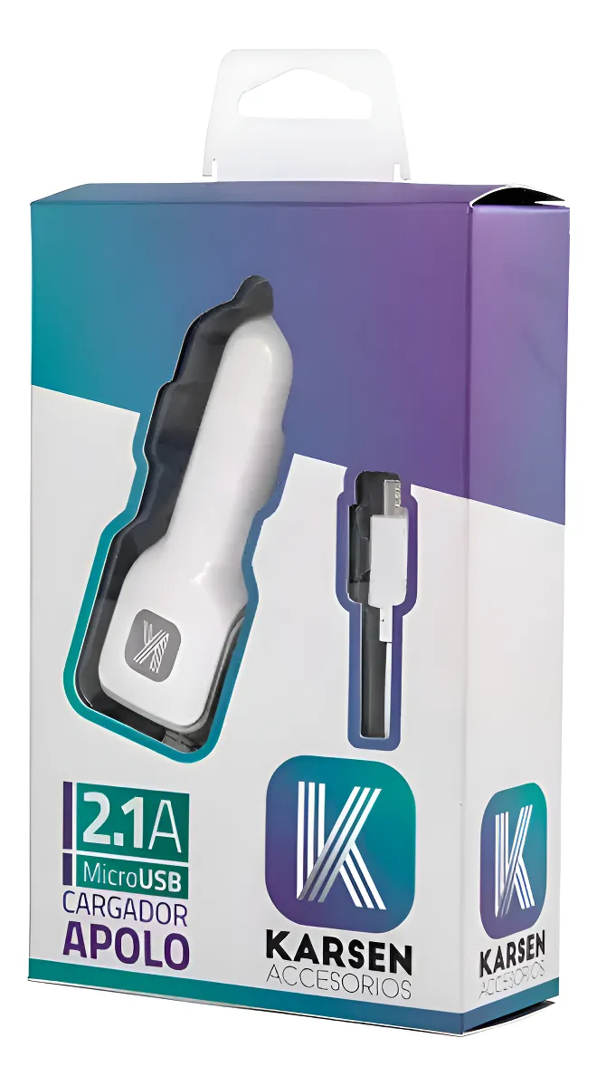 El Cargador de Auto Karsen Apolo Micro USB 2.1 Amp es un dispositivo eficiente diseñado para cargar dispositivos electrónicos en tu automóvil de forma segura. Ideal para personas que necesitan mantener sus dispositivos cargados mientras viajan, este cargador se destaca por sus características funcionales y de rendimiento.
