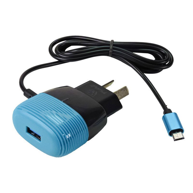 Cargador de pared con cable de 1 metro de largo ficha Micro USB y con un puerto USB adicional donde podrá conectar y cargar con otro cable simultaneamente.