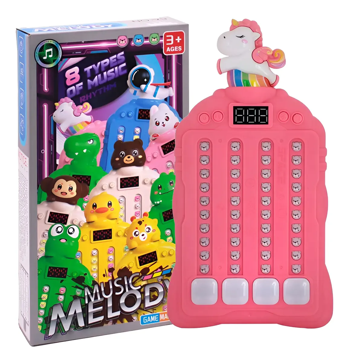 Esta consola de ritmo con luces y sonidos ajustables es el juego perfecto para niños y niñas a partir de los 3 años. Disponible en divertidos diseños, combina entretenimiento con estímulo sensorial.