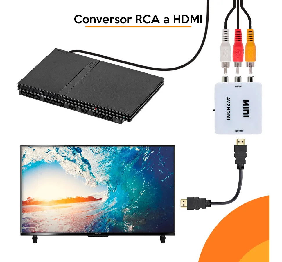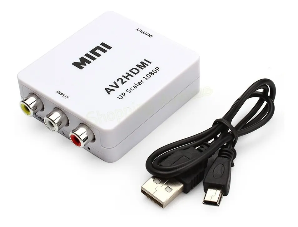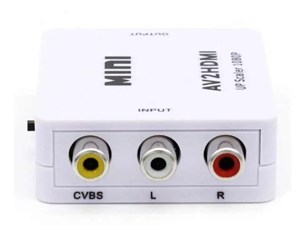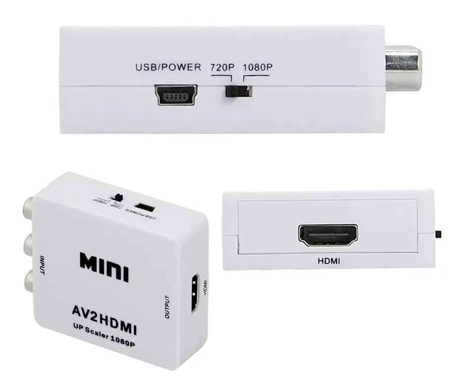 El MINI Conversor RCA a HDMI convertirá cualquier señal de video compuesto (AV)  a video y audio DIGITAL por HDMI. No necesita drivers de instalación, portátil, liviano y su alimentación es por USB.
