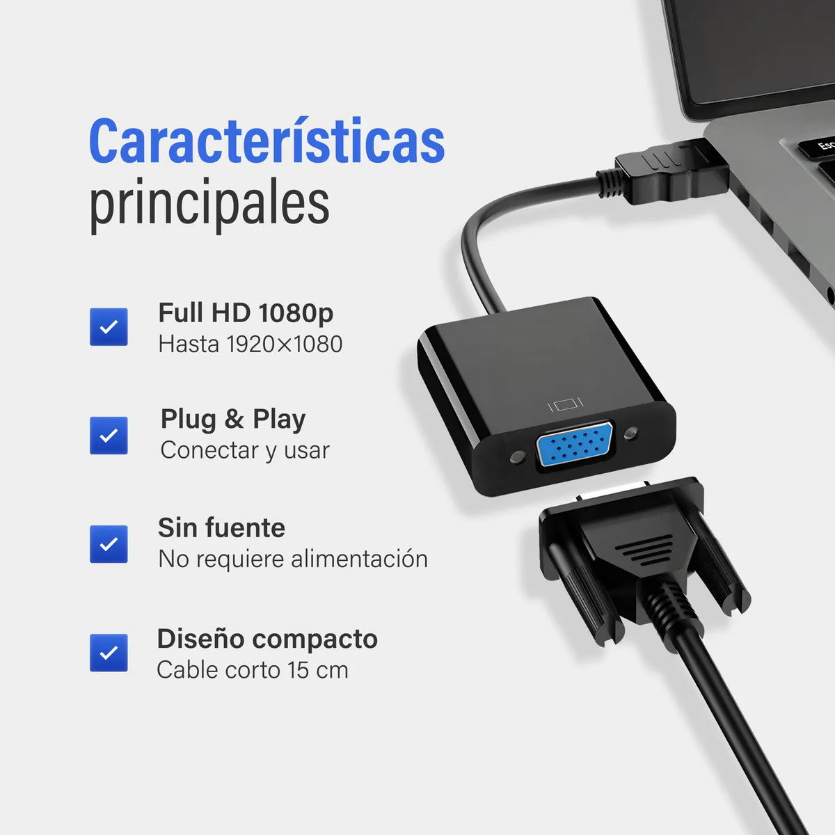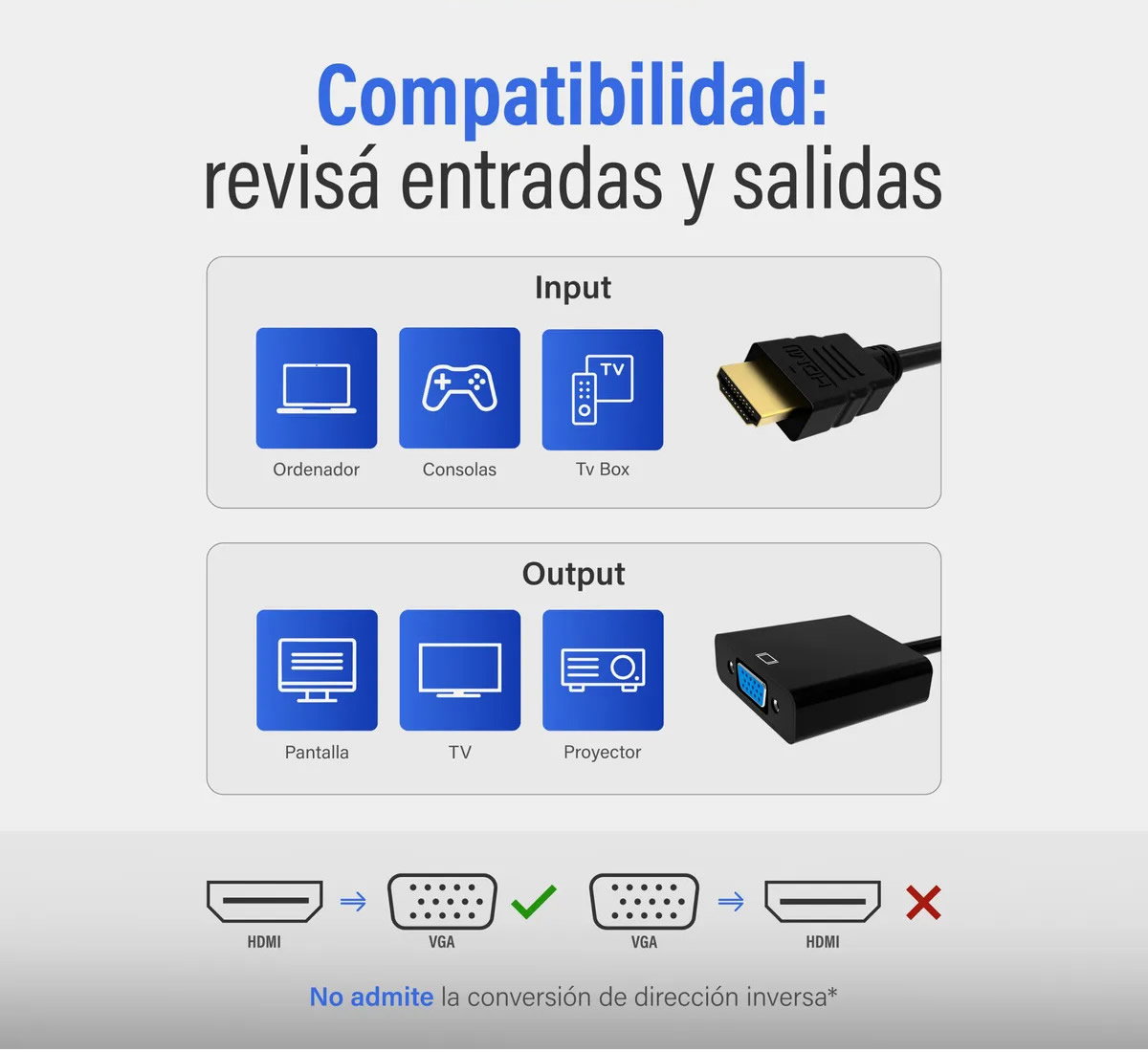 Es ideal para reutilizar pantallas antiguas o proyectores VGA con dispositivos más nuevos que solo traen salida HDMI.