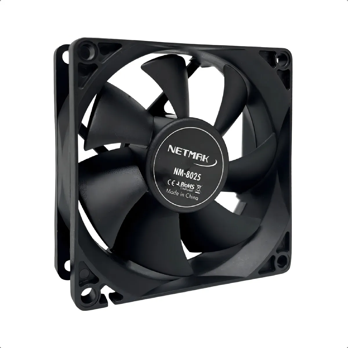 Cooler Ventilador NETMAK NM-8025 PC Gabinete 80mm Molex a Buje NEGRO