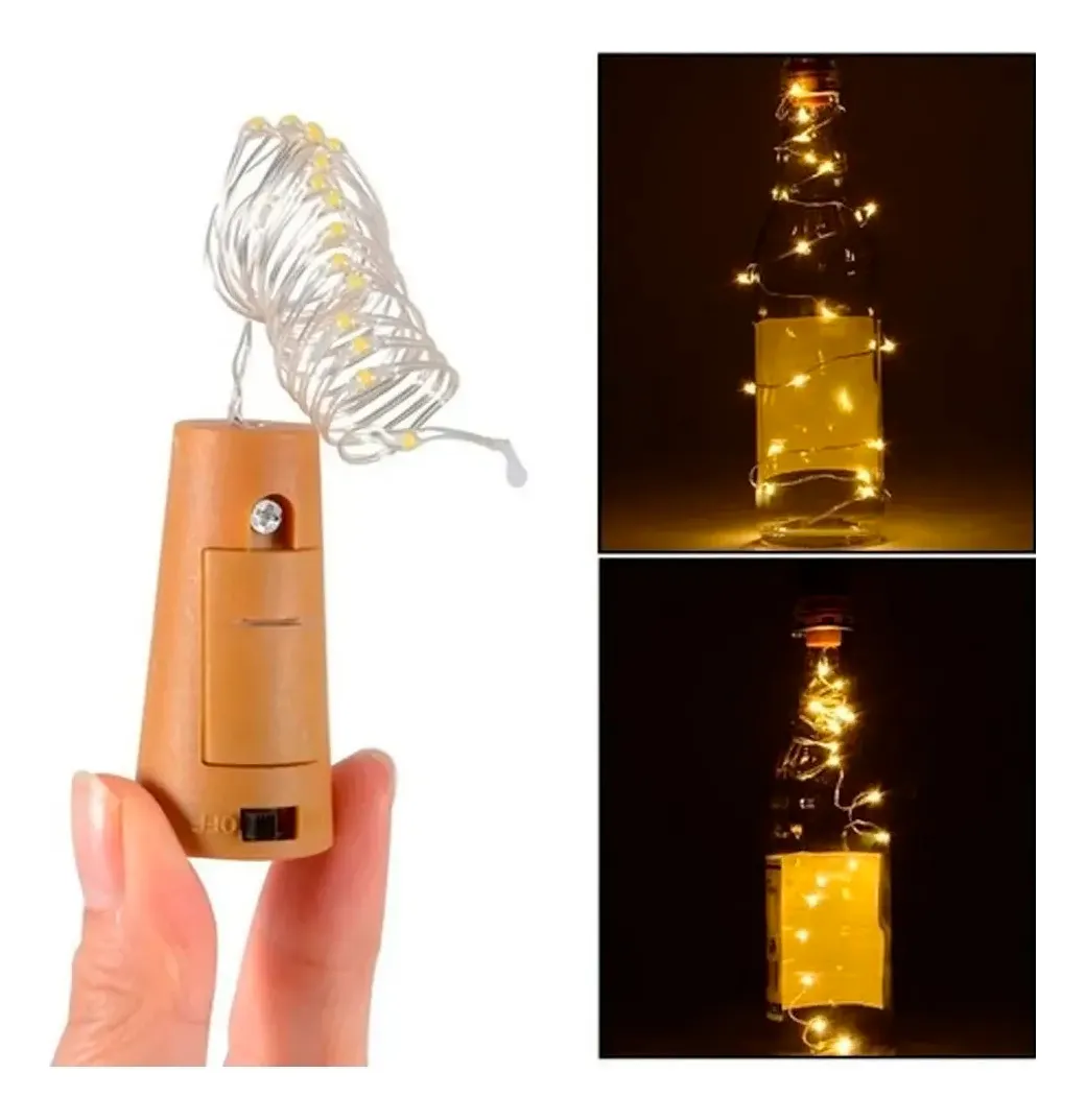 Corcho Alambre Blanco Cálido 30 LEDs de 2 metros Con Pilas AG13 Incluidas