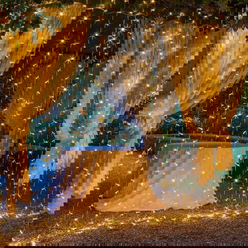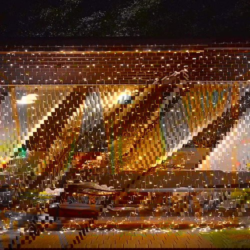 Cortina 240 LED Blanco Cálido 8 Funciones 3 Mts Ancho x 3 Mts Alto Interior Cable 220V