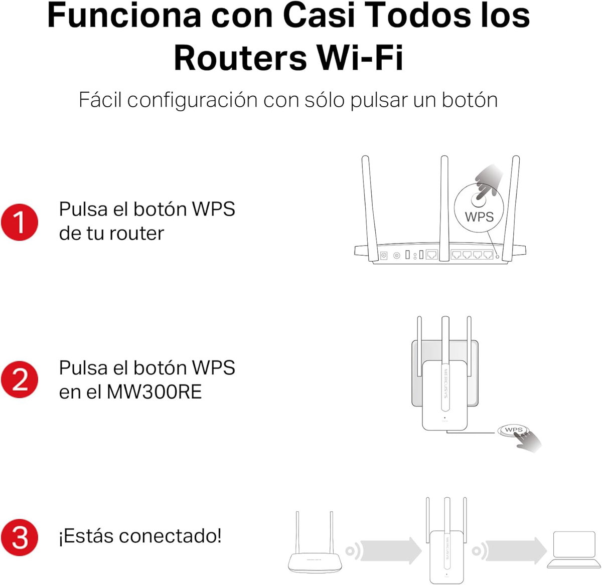 - Amplíe fácilmente la cobertura inalámbrica con una sencilla configuración de dos toques o presionando el botón WPS