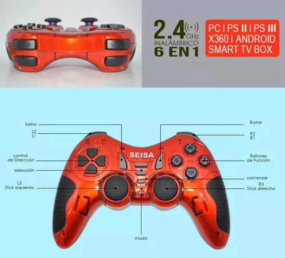 ¡Descubre el joystick 3 en 1 Seisa SJ-913 y lleva tu experiencia de juego a un nuevo nivel! Este controlador inalámbrico es la opción perfecta para los amantes de los videojuegos que buscan comodidad y versatilidad.