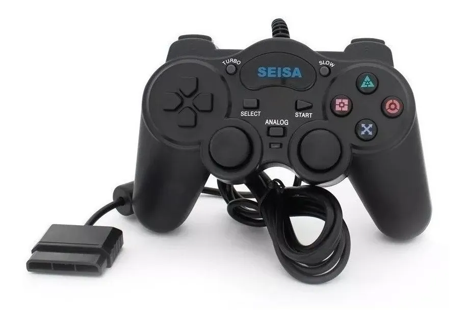 Joystick analógico para ps2 playstation 2 con doble vibración que te brinda una sensación de realidad ante los choques, golpes o explosiones en los videojuegos, adempas de poseer 12 botones de acción programables según el juego. Cuenta con el conector usado en las consolas Playstation 2 y además también compatible con consolas Playstation One.