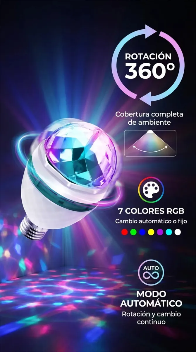 Lampara Foco Led Color Rgb Giratoria Luces Efectos Fiestas