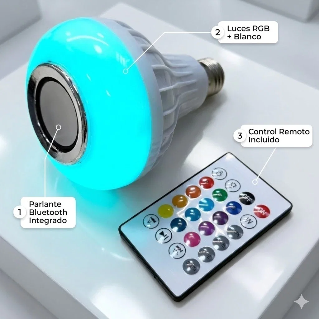 Transforma tu espacio con la Lámpara Foco Parlante Led RGB 12W de Led Music Bulb. Este foco combina iluminación LED de alta eficiencia con un sistema de sonido Bluetooth, permitiéndote disfrutar de tus melodías favoritas mientras iluminas tu hogar.