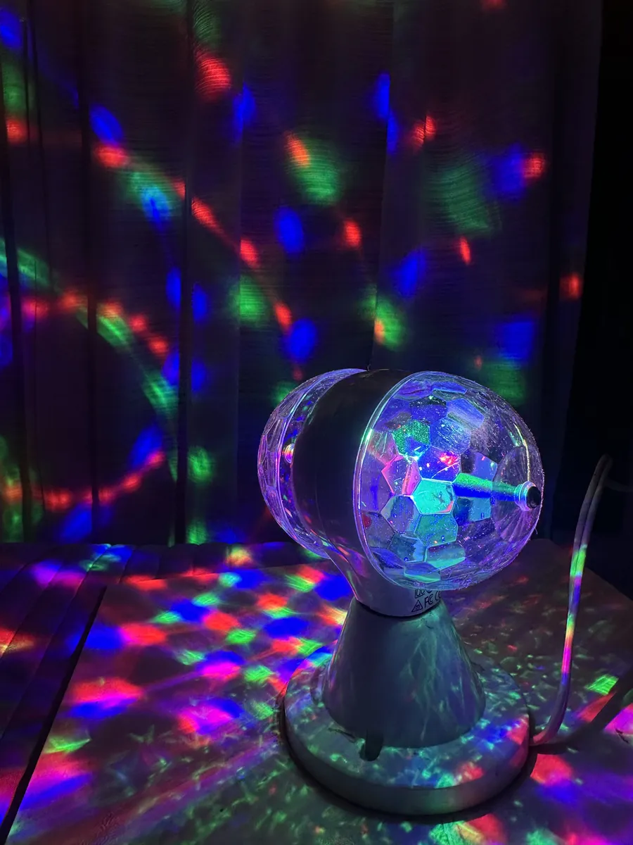 Este foco se caracteriza por su capacidad de girar, permitiendo distribuir la luz de manera uniforme en todas direcciones. Ideal para fiestas, eventos o para crear una atmósfera especial en el hogar. Hecha de plástico ABS, su diseño es compacto y ligero, lo que facilita su colocación en cualquier lugar sin ocupar demasiado espacio.