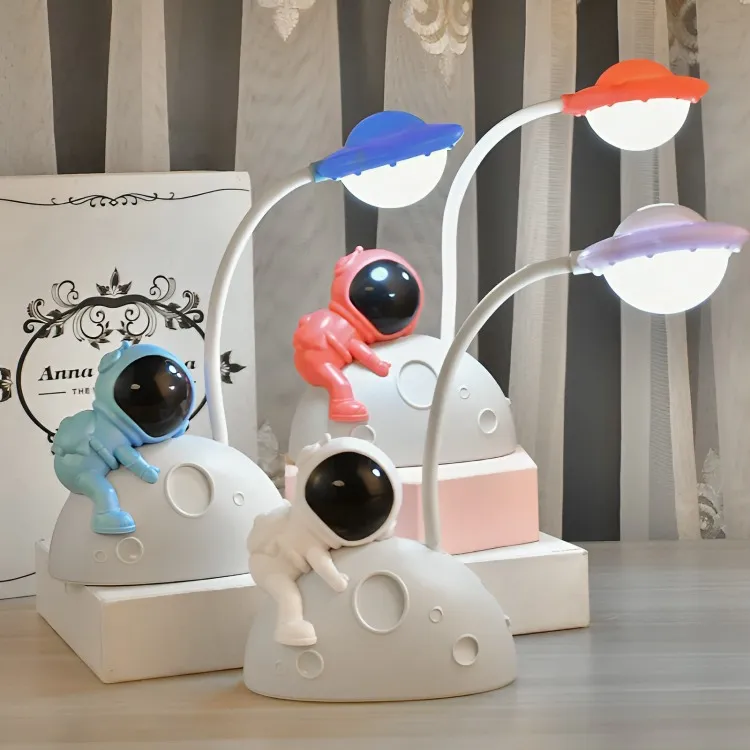 Cuenta con un botón de interruptor lateral para ajustar el primer engranaje (pantalla de luz de la cara del astronauta) y un botón de interruptor lateral para ajustar el segundo engranaje (pantalla de modo de lámpara de escritorio pequeña.