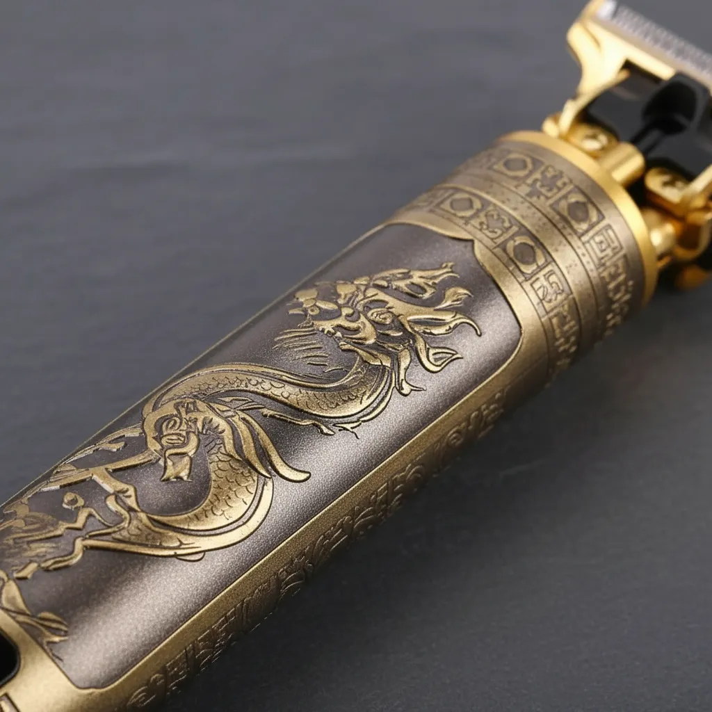 - Diseño elegante con grabado de dragón dorado.