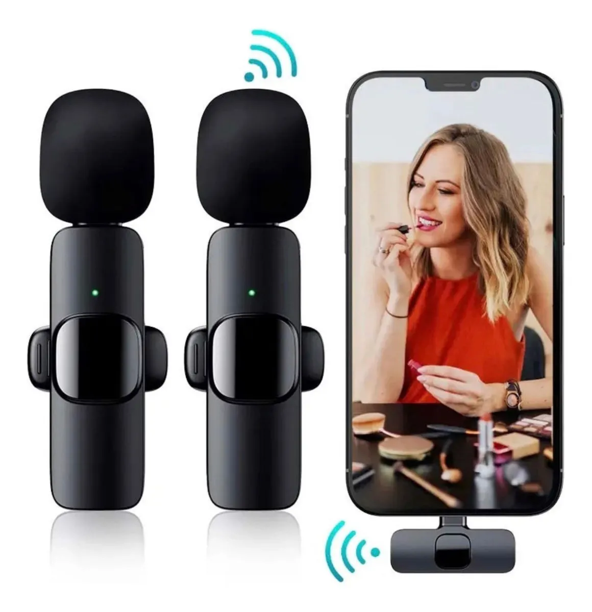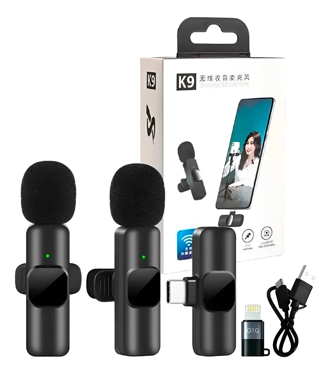 Micrófono Inalámbrico K9 Corbatero DOBLE Typo C + Adap. iPhone Incluido Bateria Recargable