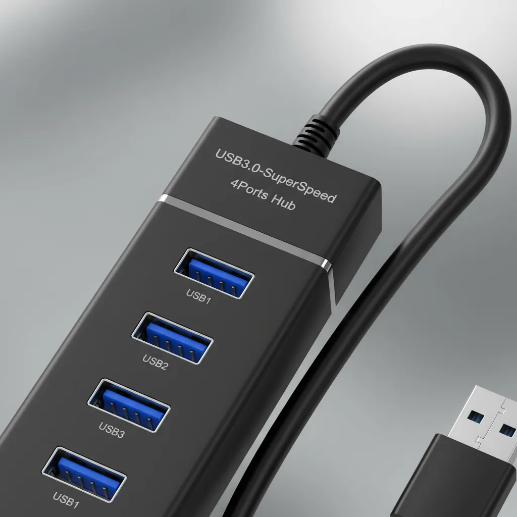 El Hub USB 4 puertos 3.0 es el accesorio ideal para ampliar la cantidad de conexiones disponibles en tu notebook o PC. Permite conectar varios dispositivos al mismo tiempo con una transferencia de datos rápida y estable de hasta 5 Gbps, manteniendo compatibilidad con puertos USB 2.0.
