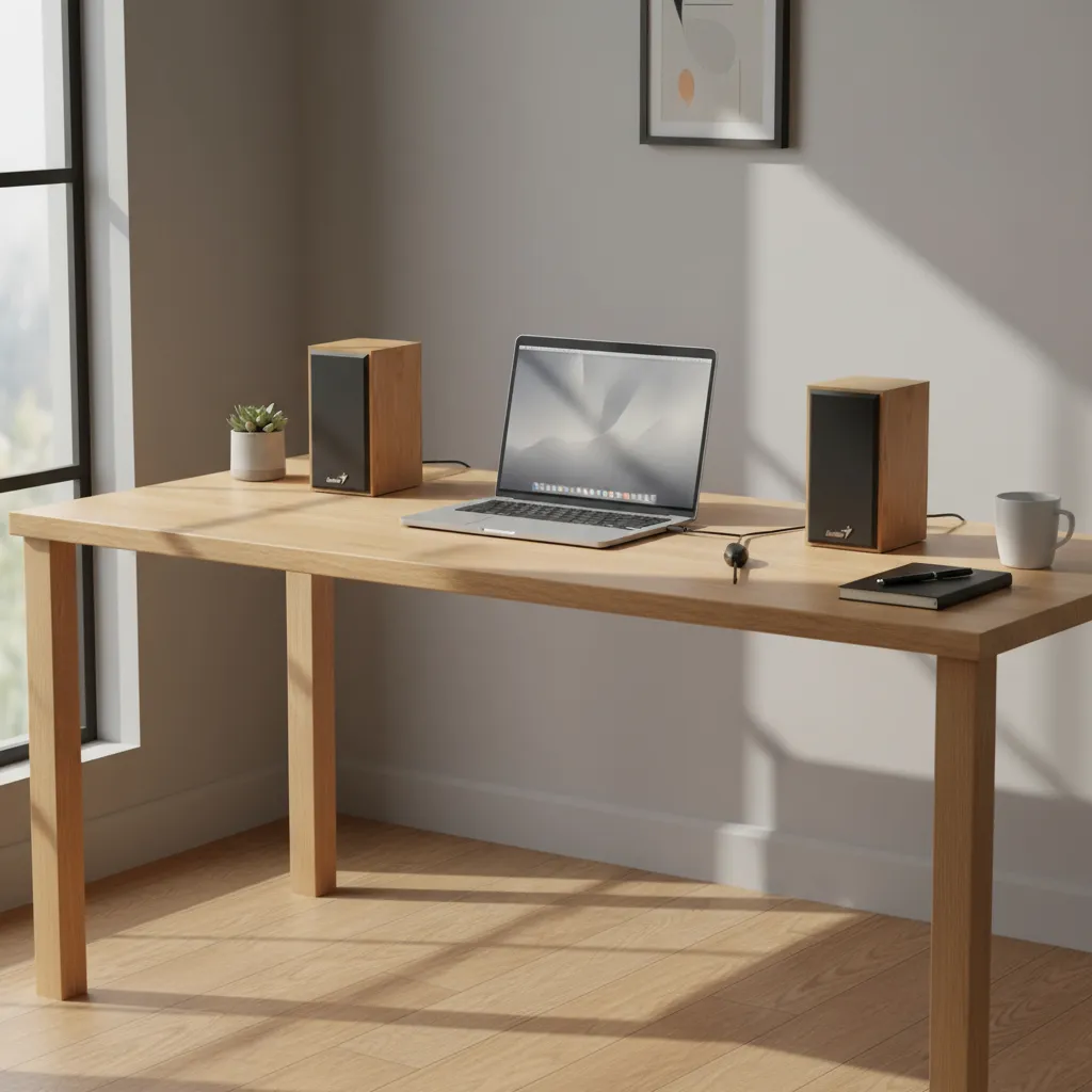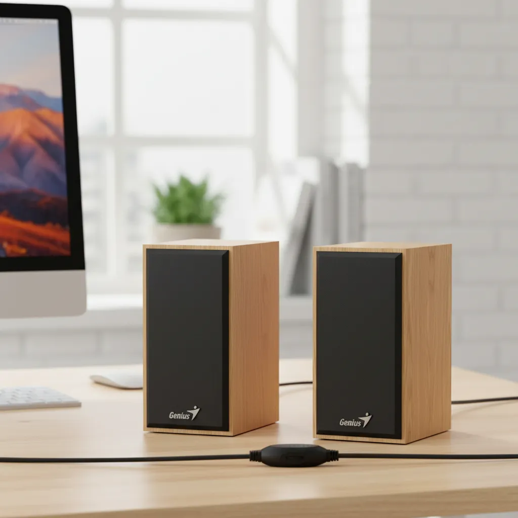 Parlante Genius SP-HF180 2.0 6W RMS Alimentación USB Cable Audio Pug 3.5 mm Madera