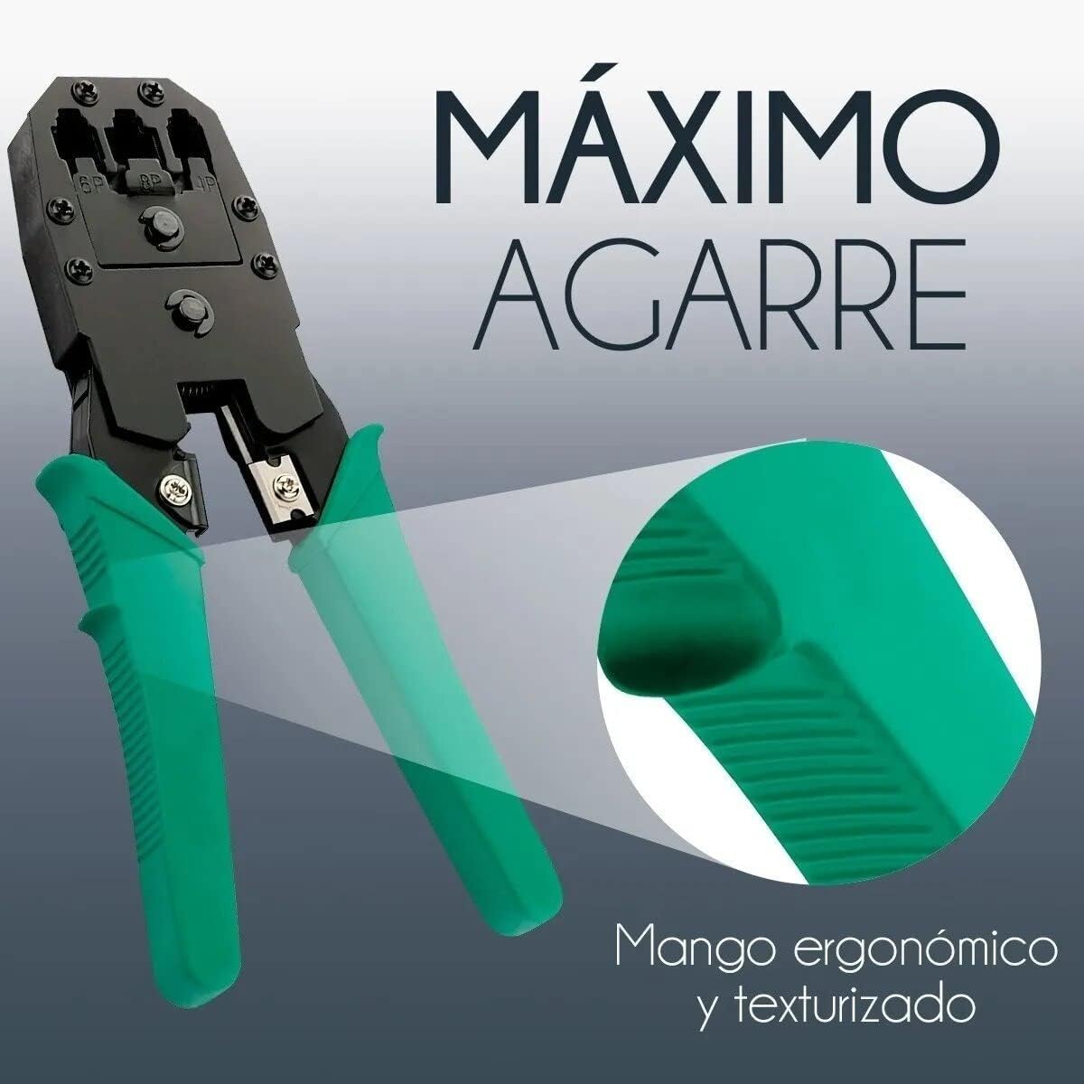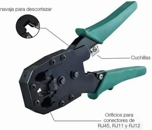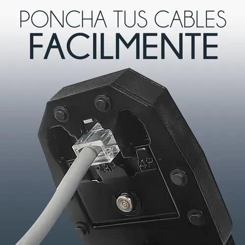 - Es compatible con conexiones de 4 hilos, 6 hilos y 8 hilos tales como RJ11, RJ12 y RJ45, incluye cortador de cable