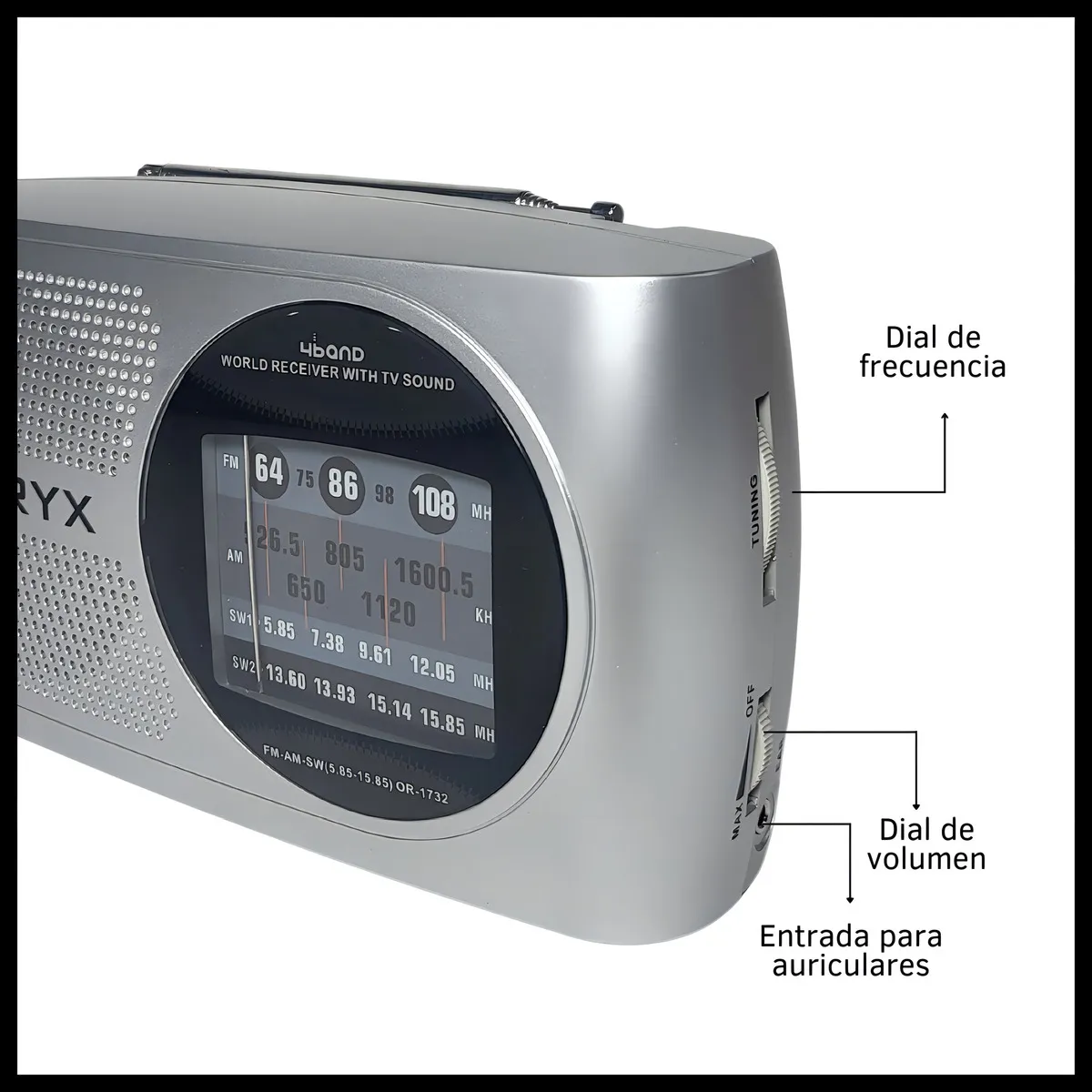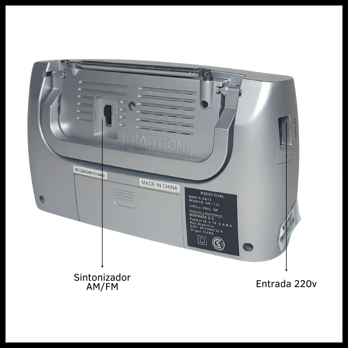 Radio AM FM ORYX OR-1732 4 Bandas Cable 220V o 2 Pilas "D" Parlante y Salida De Auricular