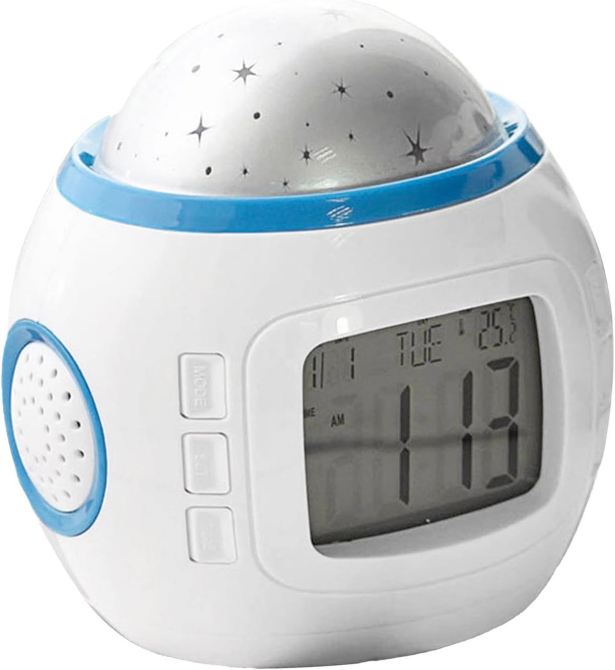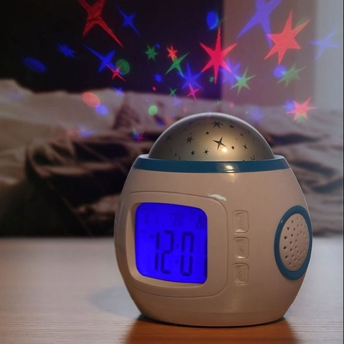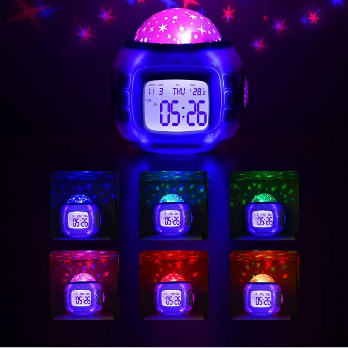 Proyecta un cielo estrellado de colores que cambian al ritmo de la suave música.