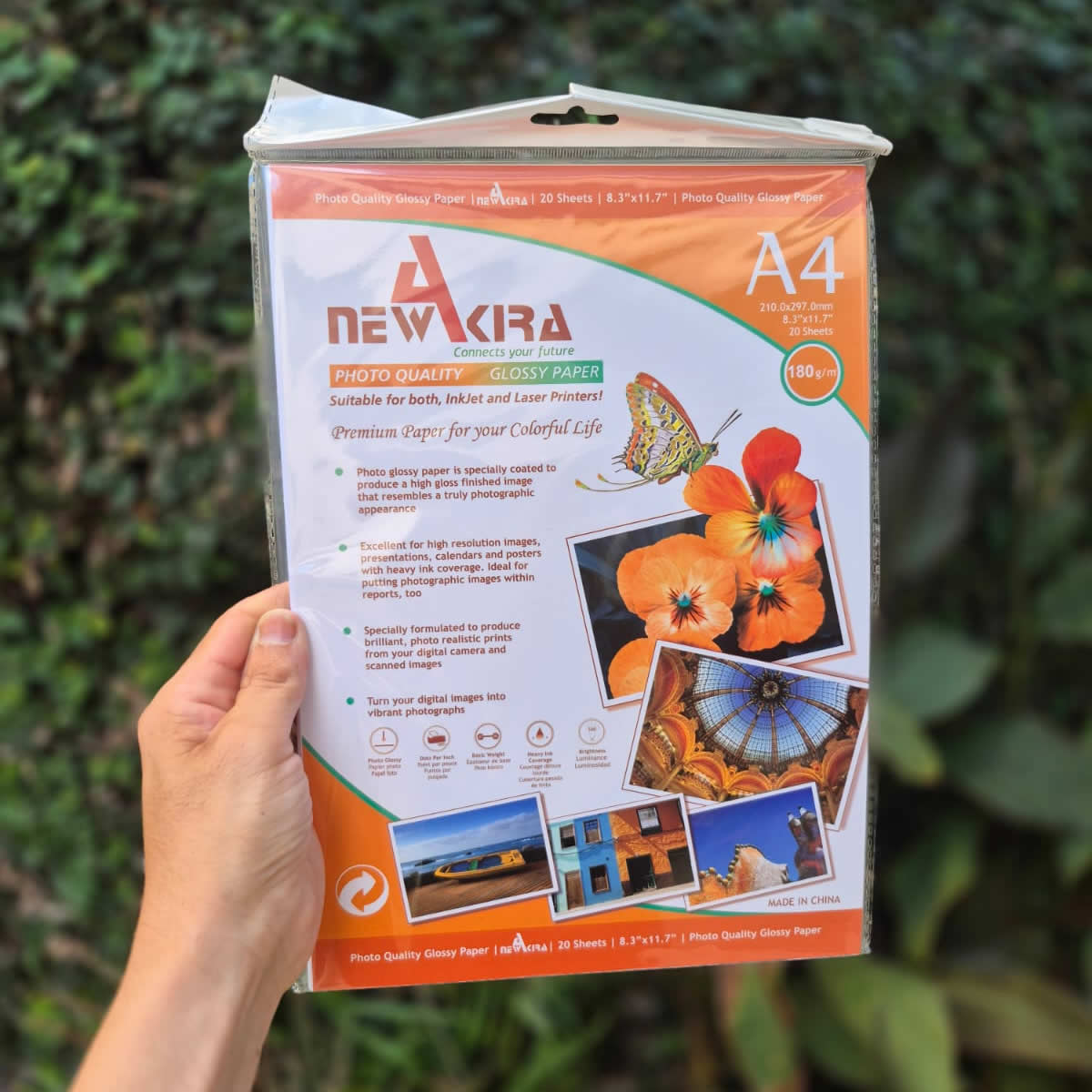 Resma A4 180 Grs. 20 Hojas New Akira Papel Foto (Brilla)