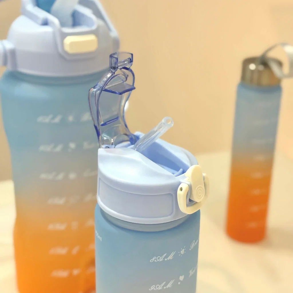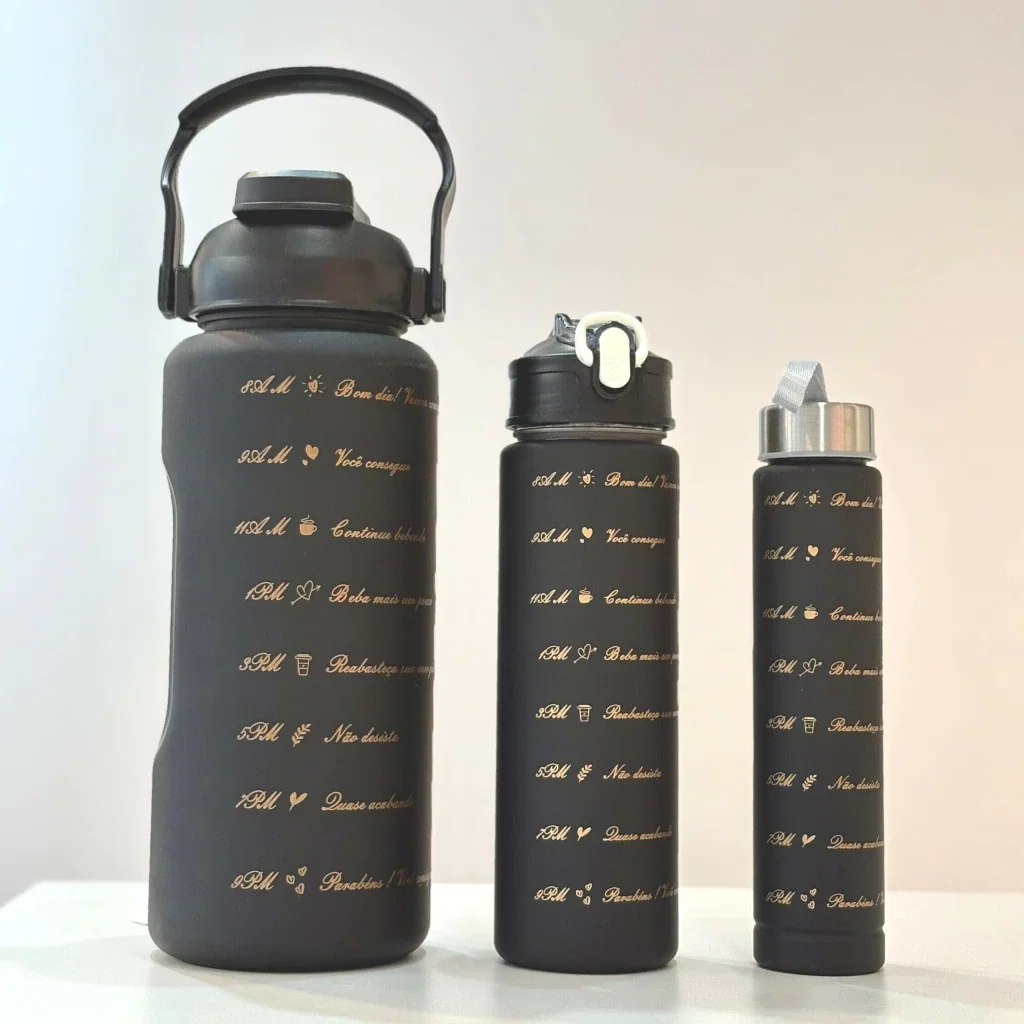 Este set incluye tres botellas de diferentes tamaños: 2 litros, 900 ml y 300 ml, perfectas para adaptarse a tus necesidades diarias. Todas están reforzadas y son BPA free, asegurando tu salud y bienestar.