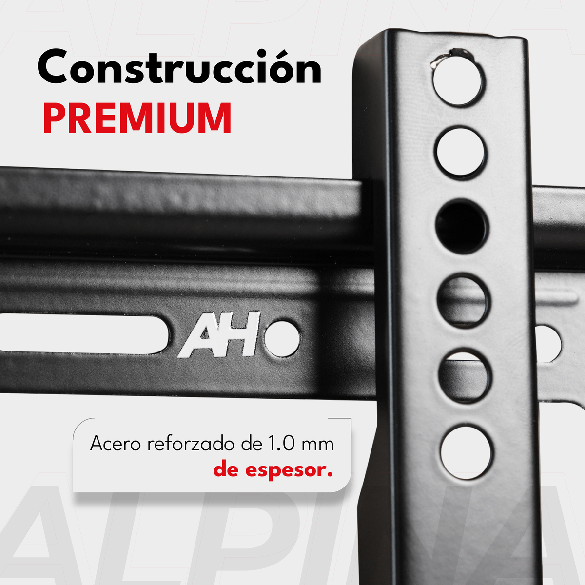 Los soportes genéricos suelen ser livianos y poco confiables, fabricados con espesores de apenas 0.6 mm. En cambio, este Soporte está construido con acero reforzado de 1.0 mm, el doble de grosor que los soportes comunes, ofreciendo mayor durabilidad y seguridad para tu TV.