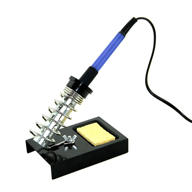 Base o soporte sencilla para estañador, soldador o cautín tipo lápiz. Permite descansar o sujetar el estañador mientras trabajamos con él. Evitar quemaduras y da mayor libertar de trabajo mientras lo utilizamos. Cuenta con una espiral de acero montada sobre una base metálica para una mayor seguridad. Incluye una pequeña esponja de limpieza, para mantener siempre la punta de nuestro estañador limpia de residuos y en perfecto estado para sondar todos nuestros proyecto.