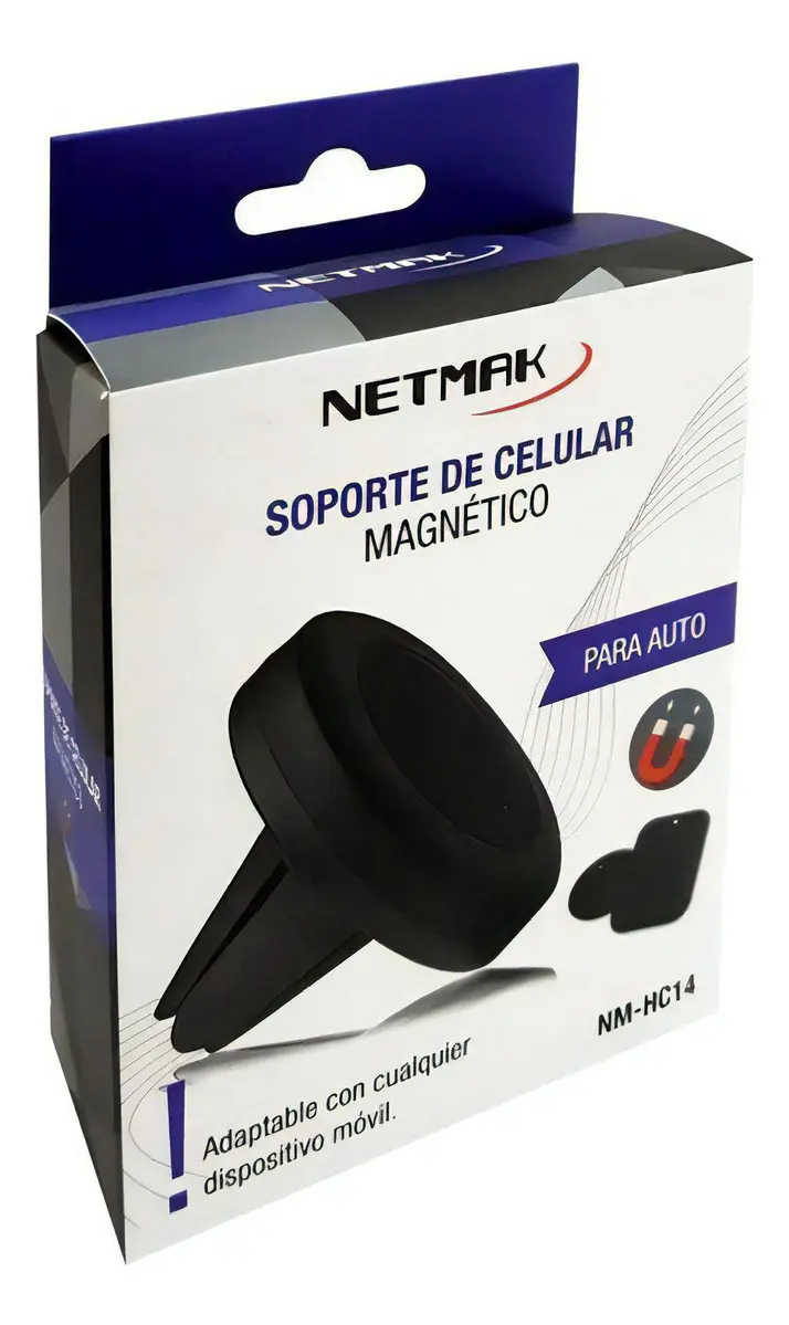Presentamos el Soporte de Celular Universal para Auto Magnético modelo NM-HC14, una innovación de la marca Netmak. Este soporte de alta calidad es universal, lo que significa que es compatible con cualquier modelo de teléfono móvil. Su sistema de sujeción es magnético, proporcionando una firmeza y seguridad excepcionales para tu dispositivo, evitando cualquier tipo de deslizamiento o caída.