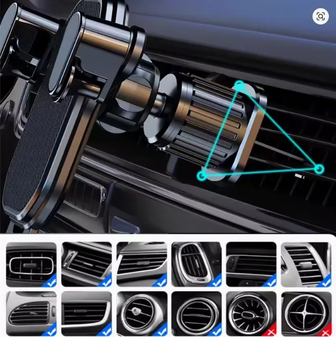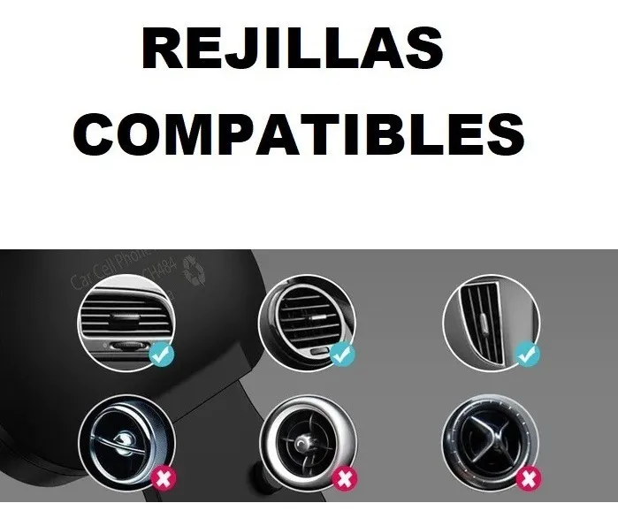 SE ENGANCHA FACILMENTE EN LA REJILLA DE LA VENTILACION Y EL CELULAR QUEDA AGARRADO Y FIRME