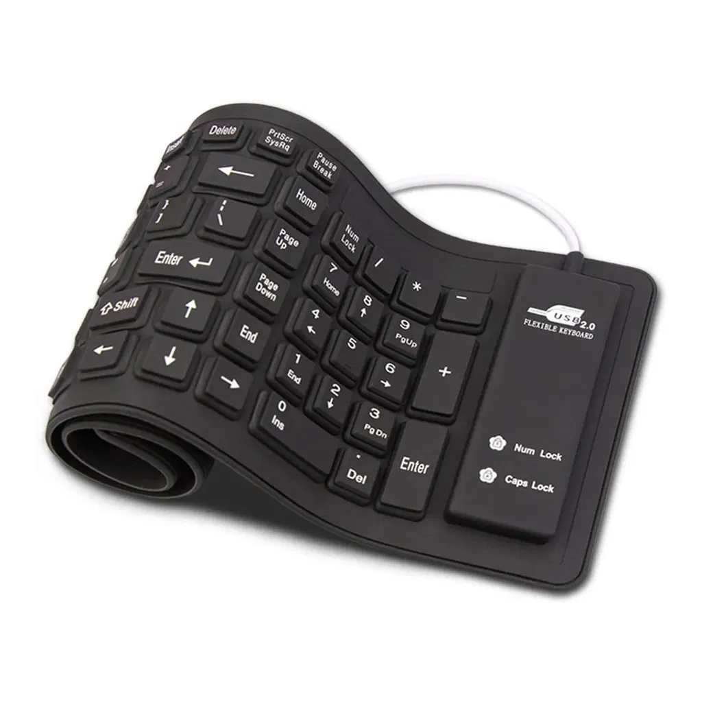 Teclado flexible y silencioso. Tipeá donde quieras y cuando quieras. Fácil de guardar y transportar. Completamente impermeable.